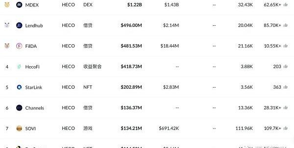 在寫稿時Heco生態項目中,MDEX鎖倉量和交易量都占據首位,其中鎖倉量達到12.2億美元,占Heco生態總鎖倉量的34.6%;日交易量達到14.3億美元,占Heco生態總交易額的77.7%。