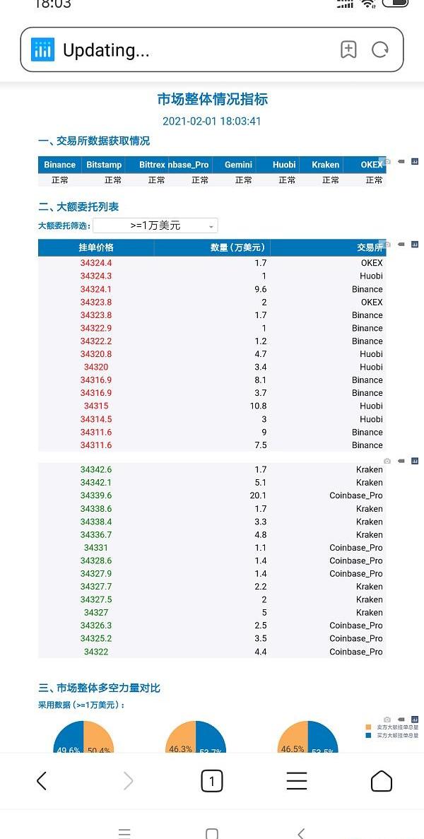 下圖為2021.2.118:03左右時,各交易所聚合后的高于1萬美元的掛單情況: