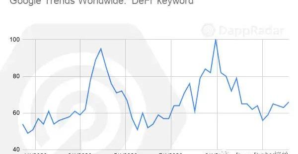 DeFi是2020年dapp增長的主要驅動力,并在關鍵指標如TVL、AUW和交易量等方面成為主導行業。這也是新聞頻道和社會討論的一個關鍵話題,在2020年4月和9月,用戶對它的關注度達到高峰。