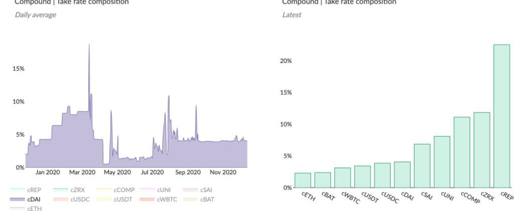 計算為GMV*采取率。目前,收入指的是項目用戶支付的全部費用。在可能的情況下,還包含了協議的用戶(供應方參與者)和所有者(代幣持有者)之間如何分配總收入的數據。