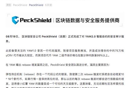 當前來看,重啟進程中的Yam開始脫離智能合約「裸奔」的狀態。8月19日,區塊鏈安全公司PeckShield宣布完成了對Yam2.0智能合約的安全審計。