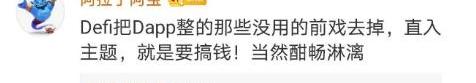 這條微博的評論區道出了真諦,DeFi就是把Dapp整的那些沒用的前戲去掉,直入主題,就是要搞錢,當然酣暢淋漓!
