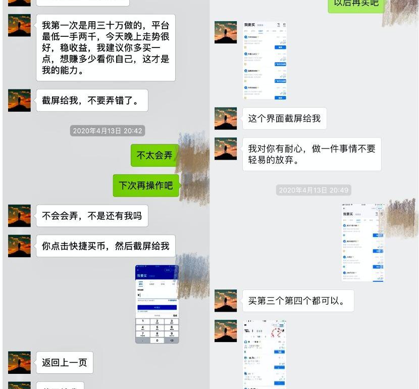 麥佳也對蜂巢財經表示,她從不是一個胡亂投資的人,雖然日常生活中也有理財經歷,但錢都是放在余額寶之類的平臺獲得固定的利息,最多買買銀行推出的保本付息的理財產品,“我是一個對錢、投資特別保守的人,就是因為想和他有一個可以相互溝通的話題,才一步步配合他。”麥佳如今想來,與方浩文每日的聊天中,對方都會有意無意地透露他投資數字貨幣的愛好,“逐漸被滲透了。”