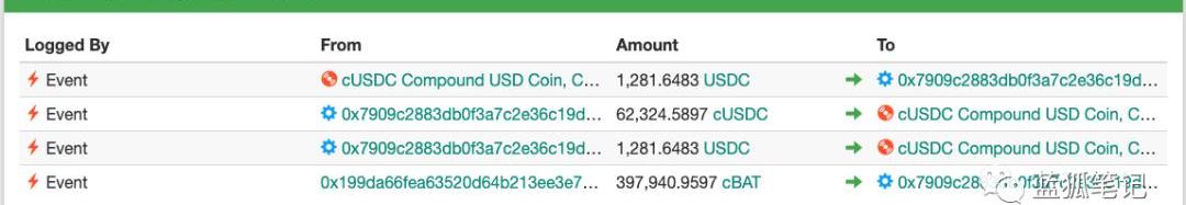 3.Compound將所需數量的借出資產從Alice處轉移至cUSDC市場合約。這樣,Alice會得到Bob的ETH抵押品,價格是市場價格的固定折扣。ETH抵押品以cETH的形式返還,允許清算人保有它以賺取出借人借入ETH所支付的利息,或者在Compound上贖回ETH。在這種情況下,Alice為自己的努力賺取7美元左右的免費ETH。