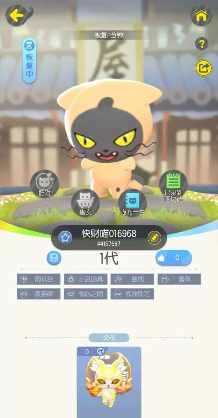 在互聯網模仿者中,最有新意的是騰訊發行的《一起來捉妖》,這款AR探索手游不僅借鑒了PokemonGo養成對戰類游戲的思路,更是和Cryptokitties的玩法如出一轍——玩家在APP中培育的貓咪信息可以上鏈,玩家之間的貓咪能夠繁衍后代,而每一個貓咪都有各自不同的特性。