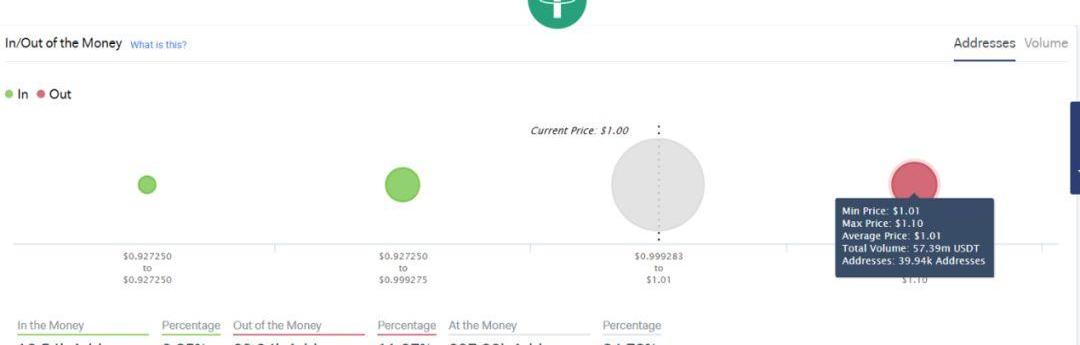根據IntoTheBlock的In-OutMoney分析,一些投資者往往會按照遠高于基價的價格買入法定貨幣支持的穩定幣,具體可從下圖對Tether和TrueUSD的分析中看出: