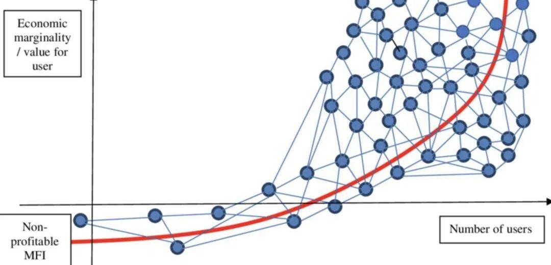 根據梅特卡夫定律,即一個社交網絡的價值與用戶數的平方成正比。用戶越多,社交平臺的價值越大,然后用戶增長曲線會在某一個單點突然爆發。