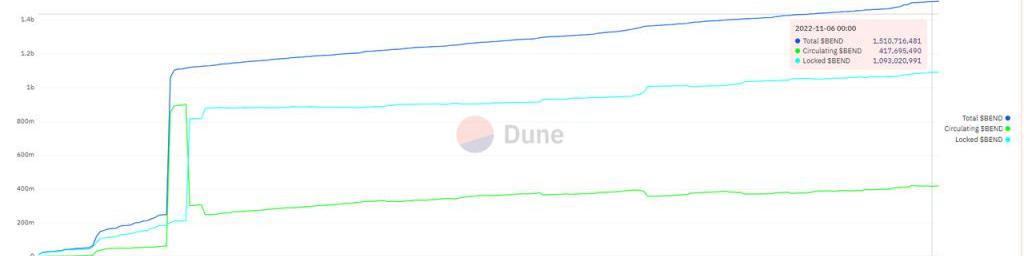 圖:BEND代幣流通數量、鎖倉數量