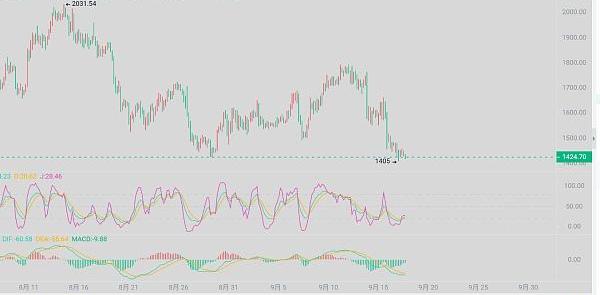 ???盤面來看k線整體還是呈現空頭下跌形態,行情未能進一步向上試探,4小時級別來看咋日幣價沖擊上軌壓制,?瞬間砸盤撐開布林帶下軌,下軌通道打開后價格持續走低,目前有所反彈在1400上方修整,技術指標來看macd雙線死叉向下運行,預計短期還會有一波反彈,因此晚間以太坊還是反彈做空為主。