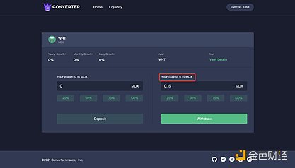 第二步:頁面上能看到錢包持有的資產余額,輸入要質押的數量,點擊“Deposit”;按照提示完成錢包授權等操作即可。完成后可看到已經質押的數量