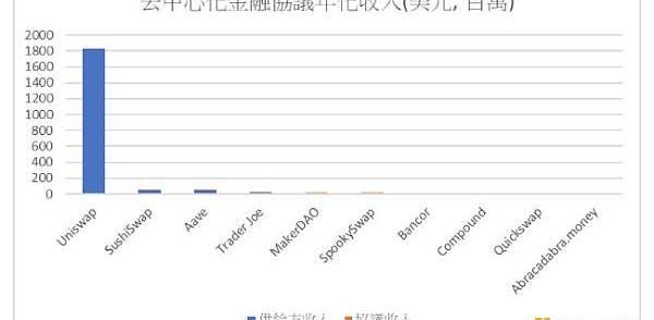 圖三去中心化金融協議年化收入(三十日數據)